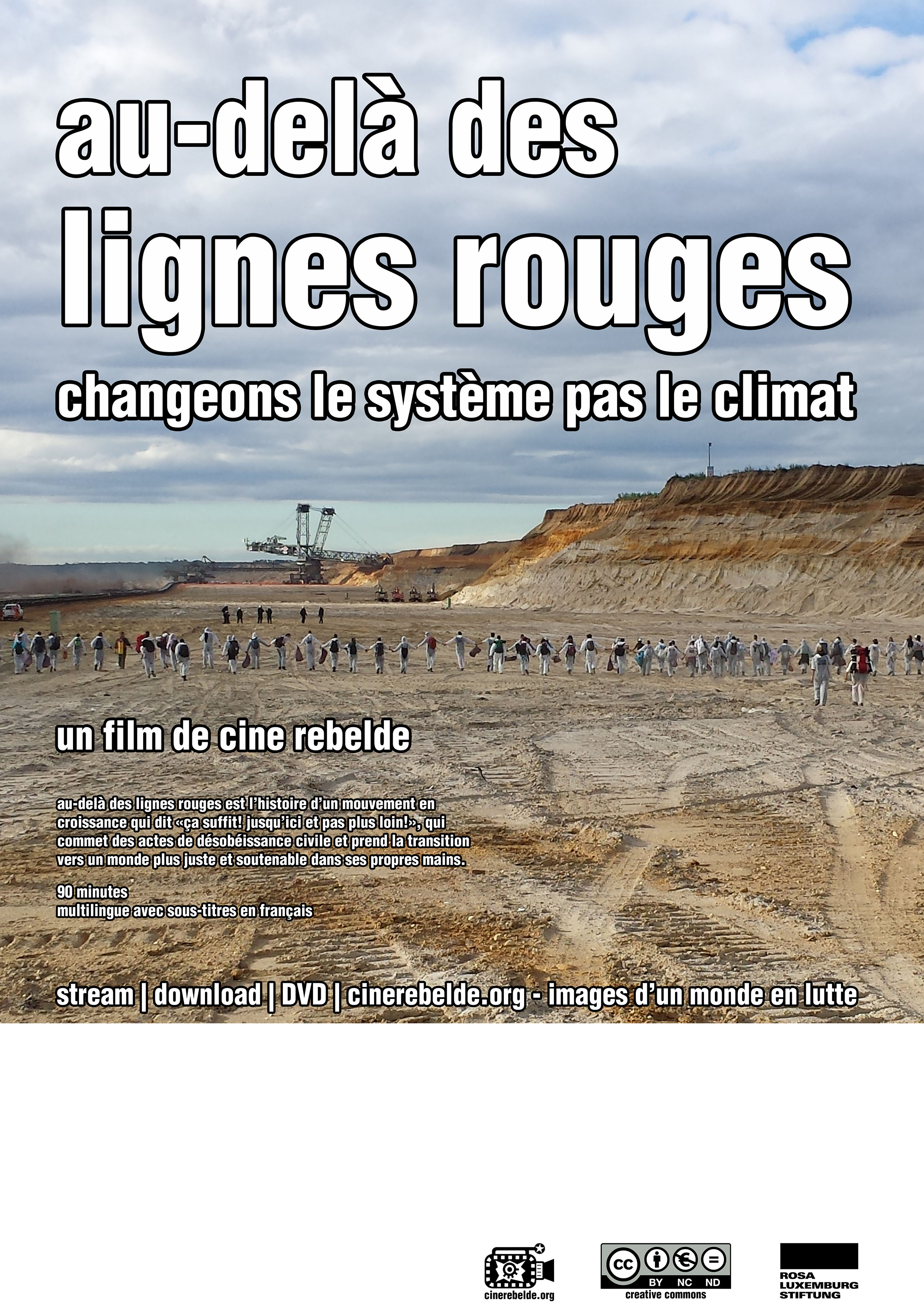 Au delà des lignes rouges est l’histoire d’un mouvement en croissance qui dit «ça suffit! Jusqu’ici et pas plus loin!», qui commet des actes de désobéissance civile et prend la transition vers un monde plus juste et soutenable dans ses propres mains.
