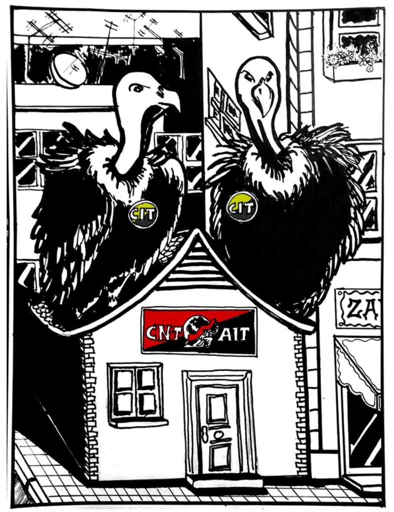 Nous nous sommes battus et continuerons à nous battre pour nous défendre tout en continuant à travailler sans relâche pour saper les structures de pouvoir et construire la société que nous voulons. Le temps est venu de briser le silence afin que le mouvement anarchiste et l’anarcho-syndicalisme du monde entier connaissent la situation de la CNT adhérant à l’AIT. Le temps est venu pour que tout le monde, y compris les syndicats et les militant-e-s qui forment la CNT© aujourd’hui, prennent part et mettent de côté leur indifférence.