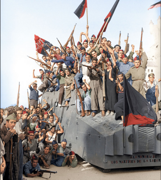 Le 24 juillet, la colonne Durruti se lance sur les routes pour reprendre Saragosse. D’autres colonnes de la CNT et de la FAI suivent (plus de 10’000 volontaires) : c’était la jeunesse anarchiste de Barcelone qui quittait la ville. Encore beaucoup d’autres s’engageront par la suite.